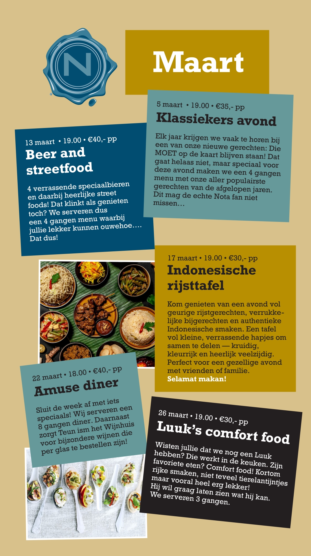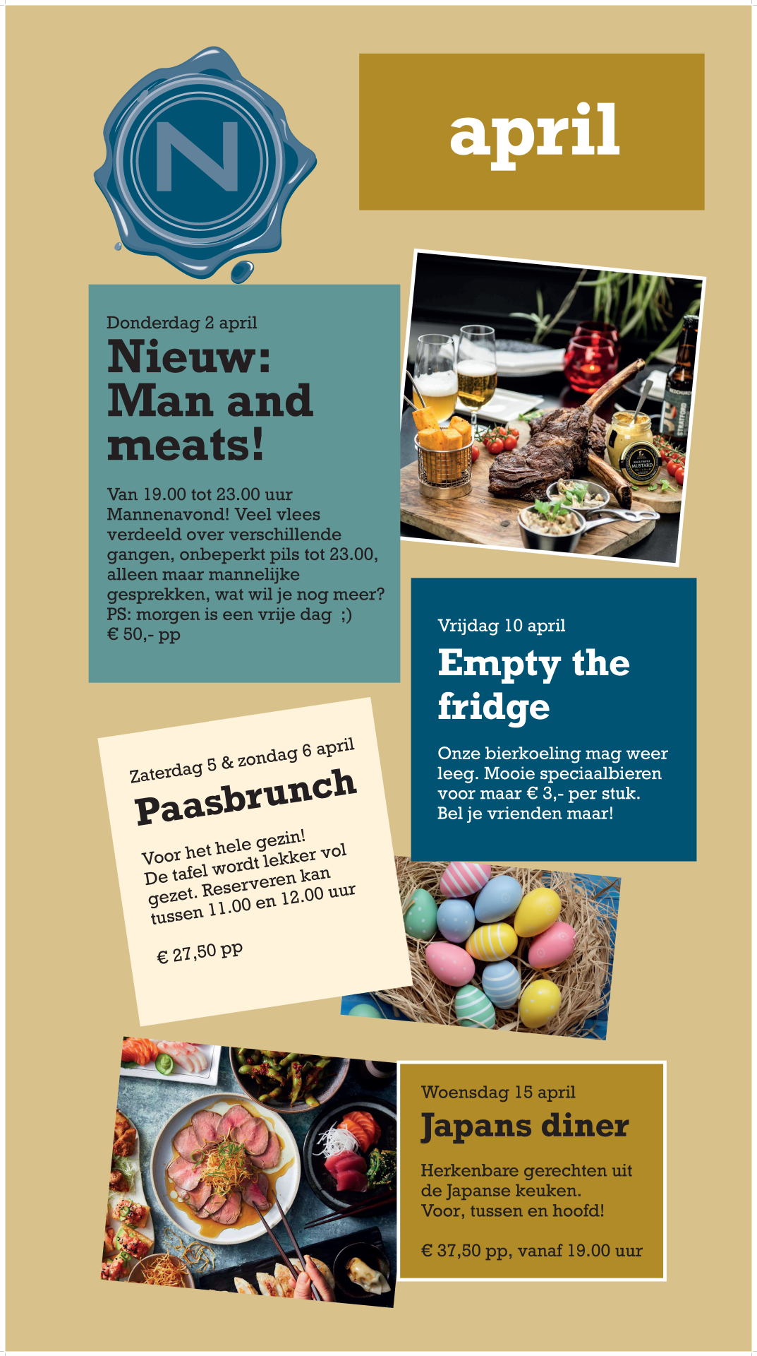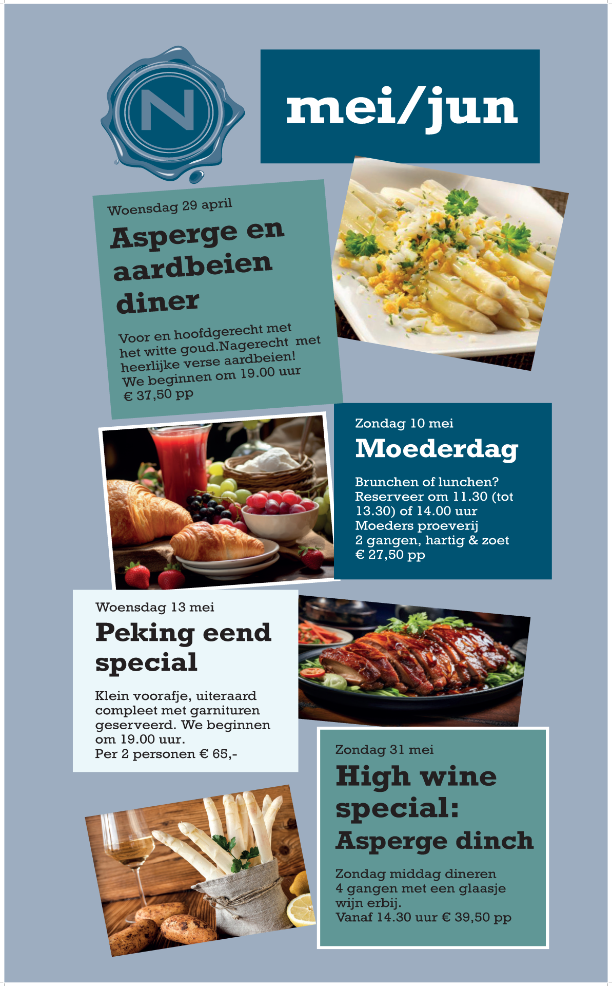 Zeven dagen in de week geopend vanaf 11:00 Reserveren voor vandaag? Bel dan naar 0486 460 777.